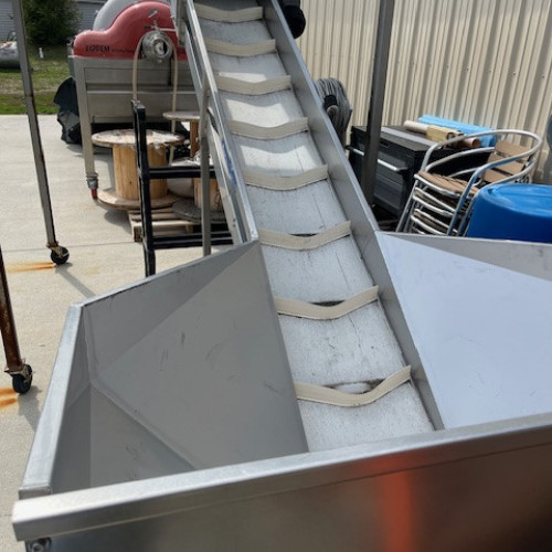 CMA grape elevator lifts grape gently to a height of approx 2.5 meters. New shaft seals in 2025. 3phase power.